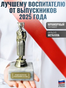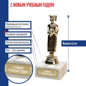 Наградная статуэтка с академическим образом подходит для вручения в образовательной сфере - от поощрения учащихся до символического признания заслуг преподавателей. Используется как сувенир на церемониях, олимпиадах и конкурсах.