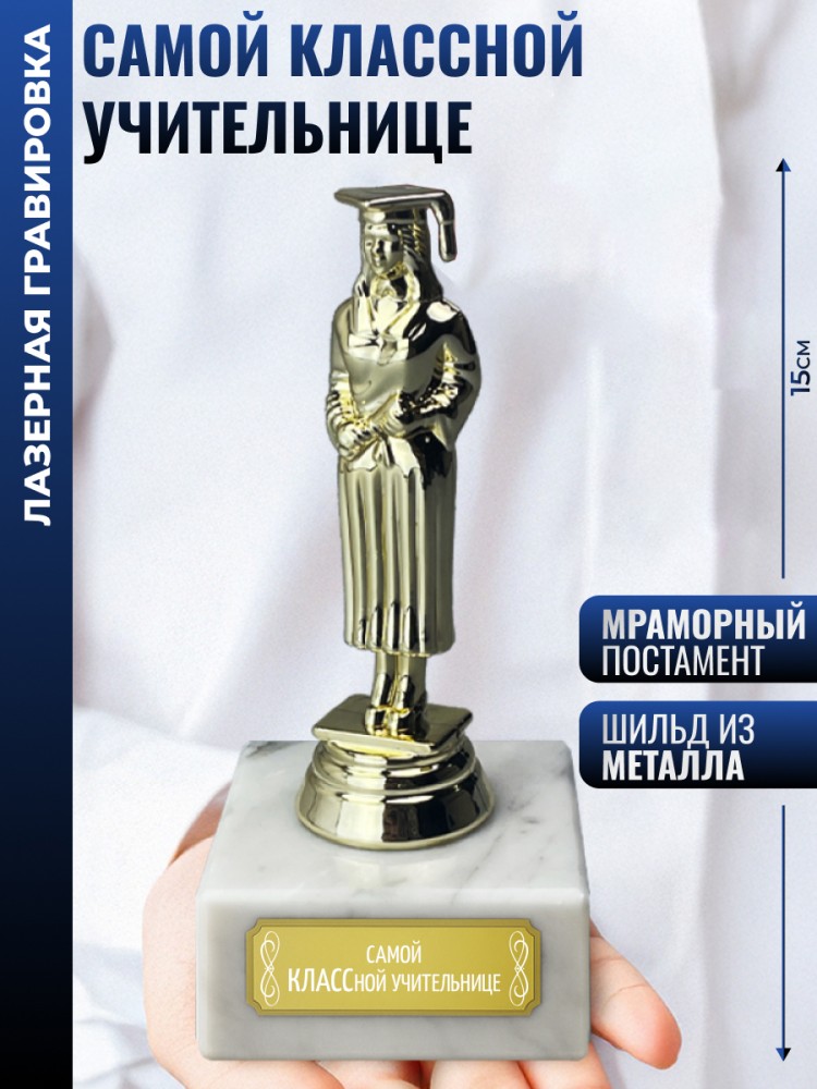 Фигурка символизирует стремление к знаниям, развитие и признание достижений в педагогике или учебной среде. Подходит для оформления образовательных пространств и коллекций памятных наград.