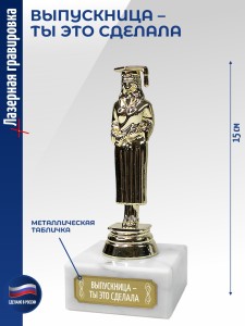 Наградная статуэтка с женским образом на учебную тему предназначена для вручения в рамках образовательных мероприятий. Используется как трофей за успехи в обучении, конкурсах и профессиональной деятельности.