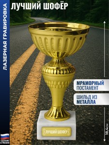 Наградной кубок используется для награждения призёров на массовых мероприятиях и праздниках или за участие в соревнованиях. Такая статуэтка будет хорошо смотреться на наградной полке.