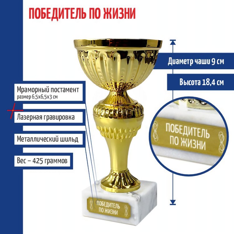 Статуэтка Кубок "Победитель по жизни" на мраморном постаменте (18,4 см) - описание товара