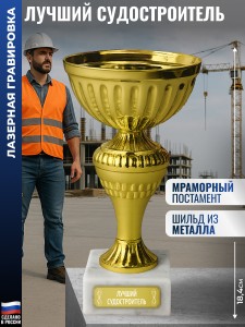 Статуэтка Кубок "Лучший судостроитель" на мраморном постаменте (18,4 см) - описание товара