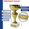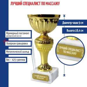 Наградной кубок используется для награждения призёров на массовых мероприятиях и праздниках или за участие в соревнованиях. Такая статуэтка будет хорошо смотреться на наградной полке.