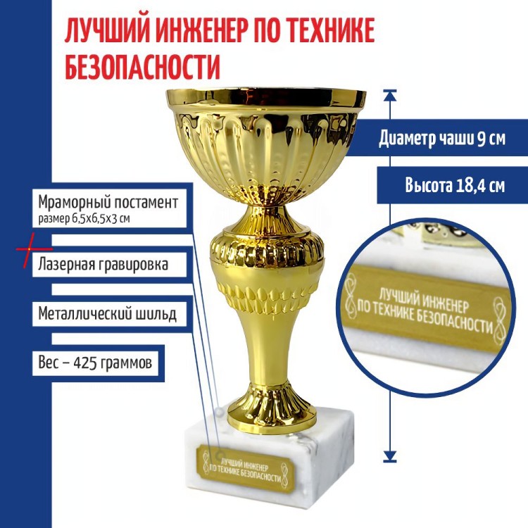 Статуэтка Кубок "Лучший инженер по технике безопасности" на мраморном постаменте (18,4 см) - описание товара
