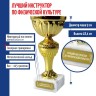 Наградной кубок используется для награждения призёров на массовых мероприятиях и праздниках или за участие в соревнованиях. Такая статуэтка будет хорошо смотреться на наградной полке.
