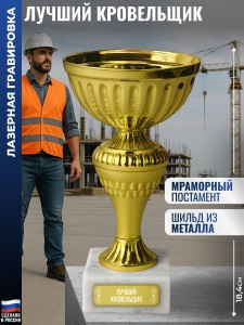 Наградной кубок используется для награждения призёров на массовых мероприятиях и праздниках или за участие в соревнованиях. Такая статуэтка будет хорошо смотреться на наградной полке.