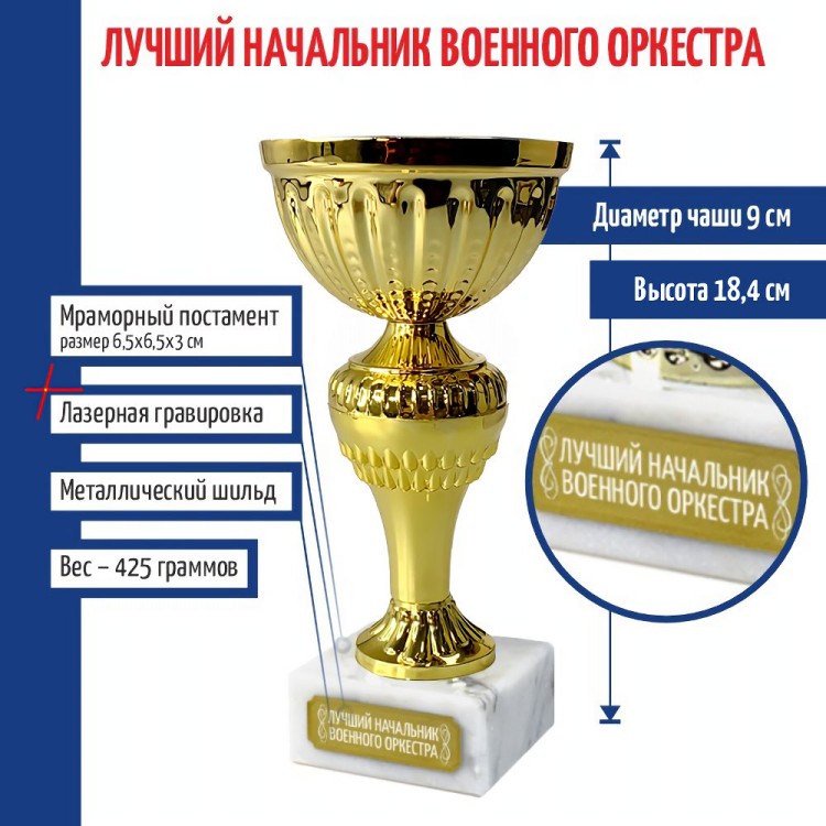 Статуэтка Кубок "Лучший начальник военного оркестра" на мраморном постаменте (18,4 см) - описание товара