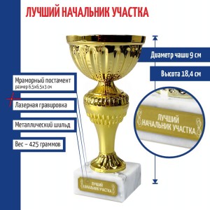 Статуэтка Кубок "Лучший начальник участка" на мраморном постаменте (18,4 см) - описание товара