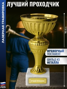Наградной кубок используется для награждения призёров на массовых мероприятиях и праздниках или за участие в соревнованиях. Такая статуэтка будет хорошо смотреться на наградной полке.