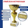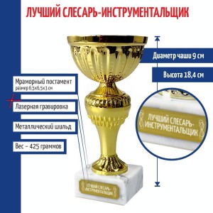 Наградной кубок используется для награждения призёров на массовых мероприятиях и праздниках или за участие в соревнованиях. Такая статуэтка будет хорошо смотреться на наградной полке.