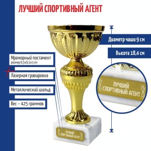 Высота кубка без постамента: 15,4 см.