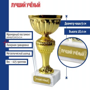 Высота кубка без постамента: 15,4 см.