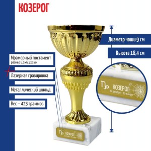 Наградной кубок используется для награждения призёров на массовых мероприятиях и праздниках или за участие в соревнованиях. Такая статуэтка будет хорошо смотреться на наградной полке.