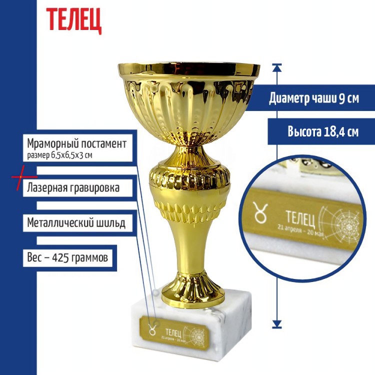 Наградной кубок используется для награждения призёров на массовых мероприятиях и праздниках или за участие в соревнованиях. Такая статуэтка будет хорошо смотреться на наградной полке.