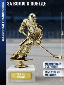 Статуэтка Хоккеист "За волю к победе" на мраморном постаменте (16 см) - описание товара