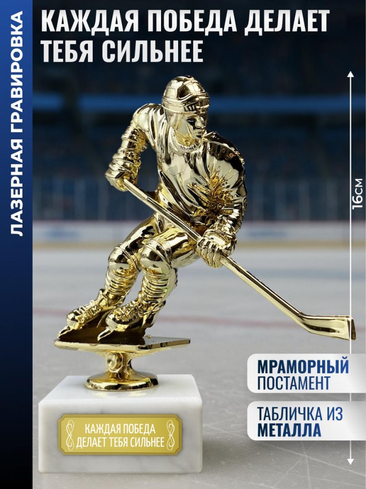 Статуэтка Хоккеист "Каждая победа делает тебя сильнее" на мраморном постаменте (16 см) - описание товара