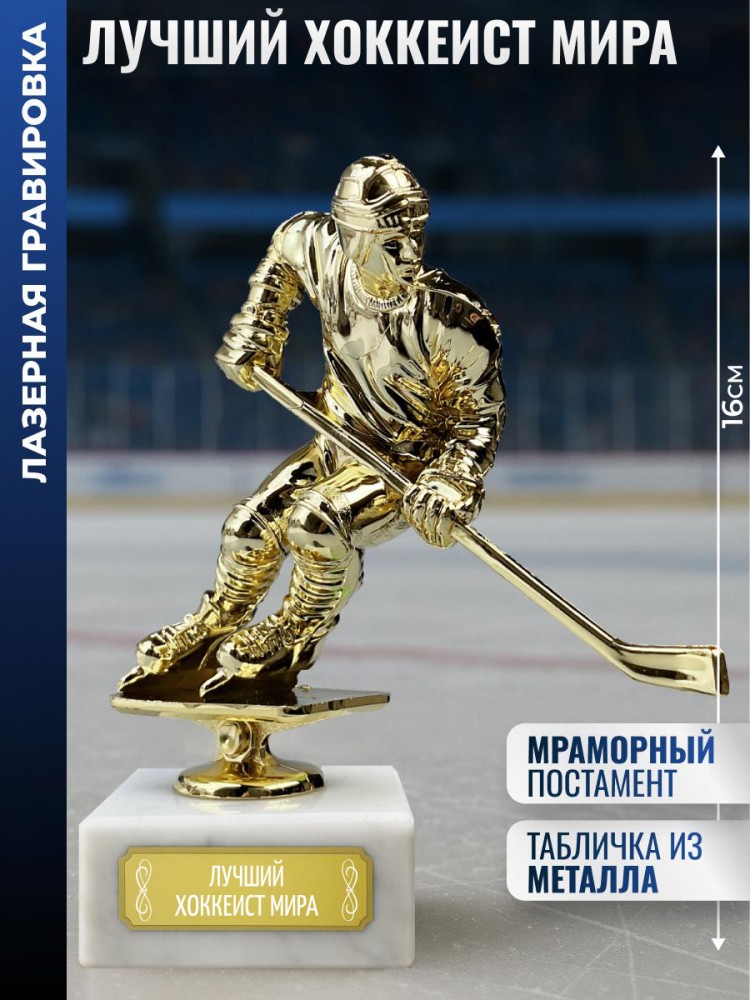 Статуэтка Хоккеист "Лучший хоккеист мира" на мраморном постаменте (16 см) - описание товара