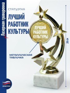 Наградной кубок со звездой используется для награждения призёров на массовых мероприятиях и праздниках или за участие в соревнованиях. Такая фигурка будет хорошо смотреться на наградной полке.