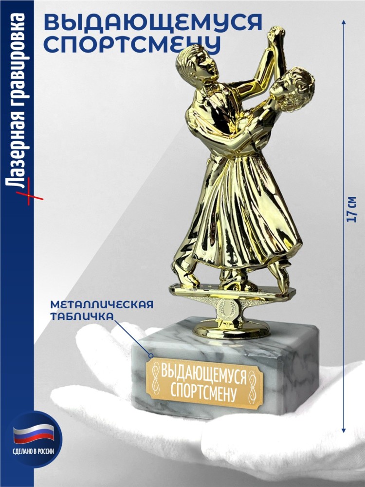 Подарочная статуэтка в виде танцующей пары - символ победы и страсти к парным танцам. Подходит для награждения как профессиональных исполнителей и педагогов, так и приз начинающим музыкантам.