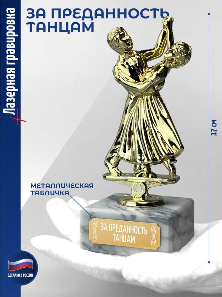 Подарочная статуэтка в виде танцующей пары - символ победы и страсти к парным танцам. Подходит для награждения как профессиональных исполнителей и педагогов, так и приз начинающим музыкантам.