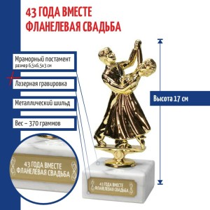 Подарочная статуэтка в виде танцующей пары - символ победы и страсти к парным танцам. Подходит для награждения как профессиональных исполнителей и педагогов, так и приз начинающим музыкантам.