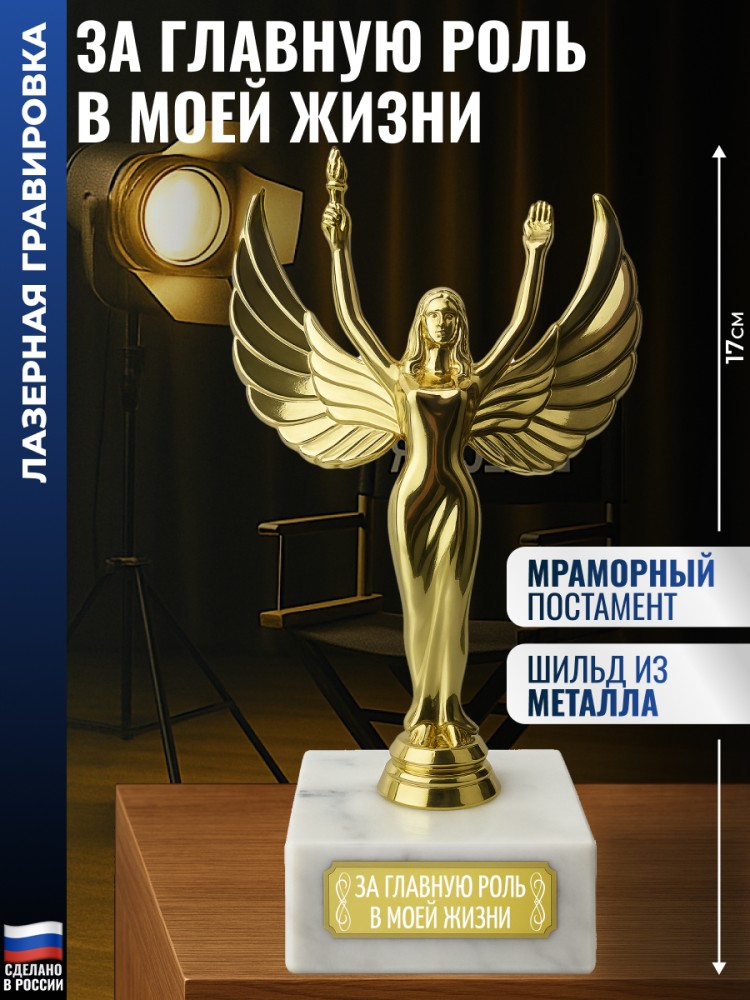 Наградная статуэтка с женщиной на мраморном постаменте - символ успеха и величия.
