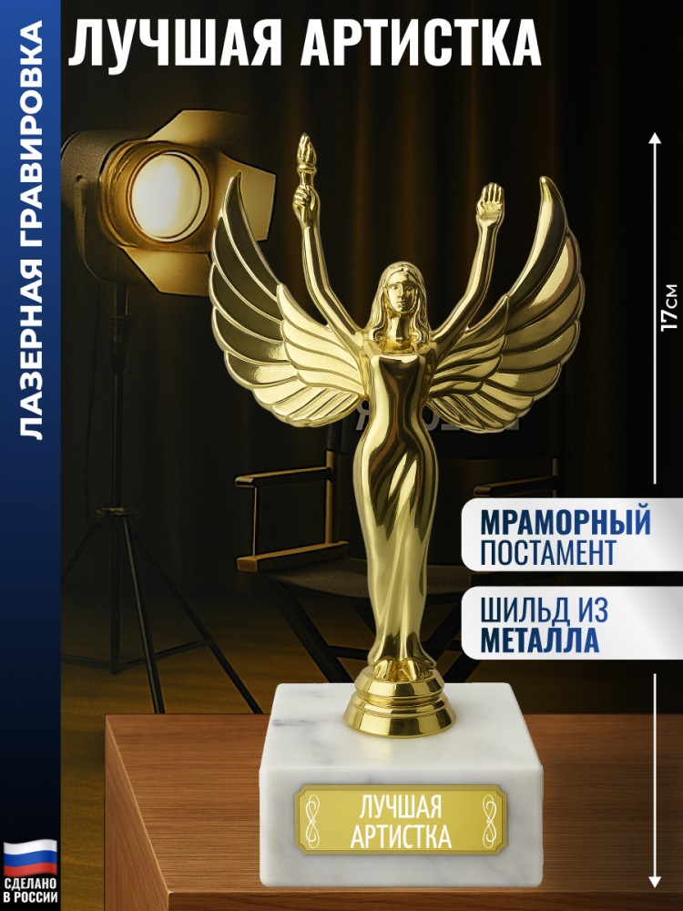 Наградная статуэтка с женщиной на мраморном постаменте - символ успеха и величия.