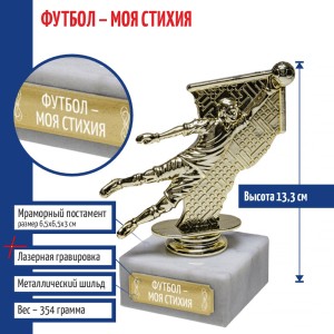 Наградная статуэтка с изображением вратаря и мяча - подходит для вручения участникам и призёрам футбольных турниров, лиг и матчей, а также для оформления спортивных интерьеров.