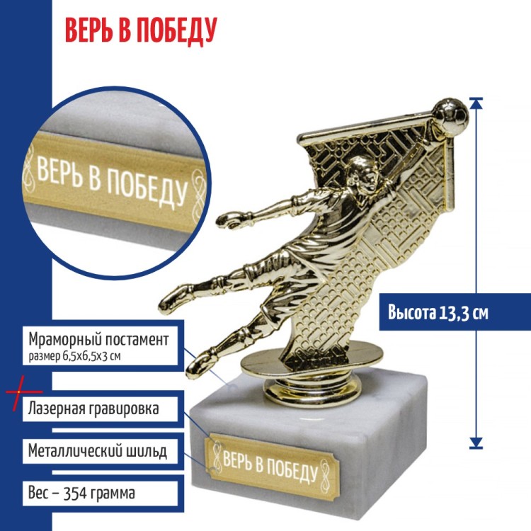 Статуэтка футбол Вратарь "Верь в победу" на мраморном постаменте (13,3 см) - описание товара