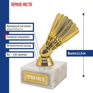 Наградной кубок с воланом используется для награждения призёров на массовых мероприятиях и праздниках или за участие в соревнованиях. Такая фигурка будет хорошо смотреться на наградной полке.