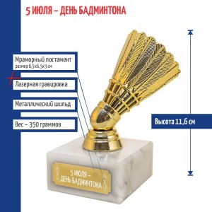 Статуэтка Бадминтон "5 июля - день бадминтона" на мраморном постаменте (11,6 см) - описание товара