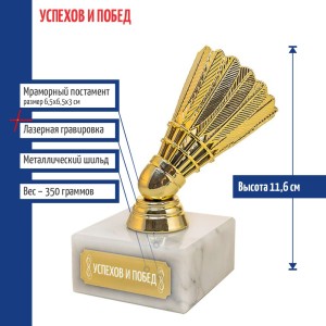 Статуэтка Бадминтон "Успехов и побед" на мраморном постаменте (11,6 см) - описание товара
