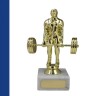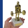 Наградная статуэтка с фигуркой штангиста на мраморной подставке. Подходит для размещения в интерьерах спортивных залов и коллекций спортивных трофеев.
