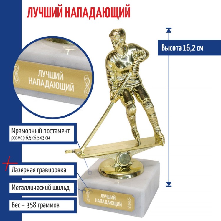 Статуэтка Хоккеистка "Лучший нападающий" на мраморном постаменте (16,2 см) - описание товара