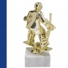 Фигурка вратаря в стойке с хоккейной клюшкой выполнена в наградном формате и устанавливается на каменный постамент с гравировкой. Композиция передаёт динамику спортивного момента и акцентирует внимание на защитной позиции игрока.