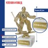 Фигурка вратаря в стойке с хоккейной клюшкой выполнена в наградном формате и устанавливается на каменный постамент с гравировкой. Композиция передаёт динамику спортивного момента и акцентирует внимание на защитной позиции игрока.