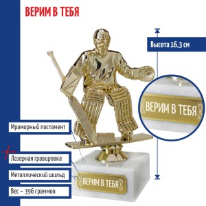 Статуэтка Хоккеист вратарь "Верим в тебя" на мраморном постаменте (16 см) - описание товара