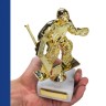Фигурка вратаря в стойке с хоккейной клюшкой выполнена в наградном формате и устанавливается на каменный постамент с гравировкой. Композиция передаёт динамику спортивного момента и акцентирует внимание на защитной позиции игрока.