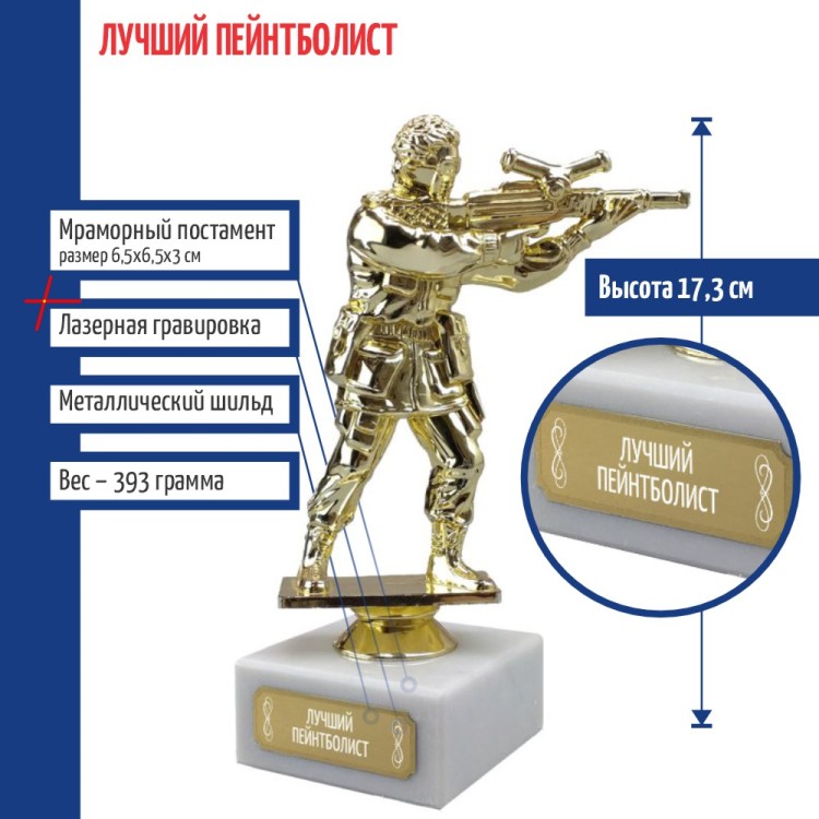 Статуэтка Пейнтбол "Лучший пейнтболист" на мраморном постаменте (17,3 см) - описание товара