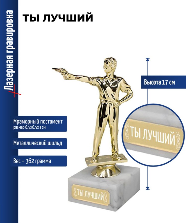 Статуэтка Пистолетный Стрелок "Ты лучший" на мраморном постаменте (17 см) - описание товара
