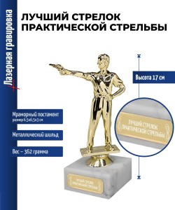 Статуэтка Пистолетный Стрелок "Лучший стрелок практической стрельбы" на мраморном постаменте (17 см) - описание товара