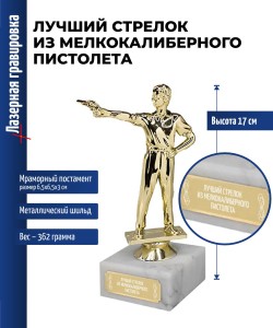 Статуэтка Пистолетный Стрелок "Лучший стрелок из мелкокалиберного пистолета" на мраморном постаменте (17 см) - описание товара