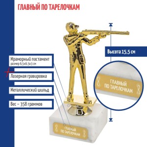 Наградная статуэтка «Стрелок с ружьем» - используется для вручения участникам соревнований, признавая достижения как новичков, так и опытных тренеров и ветеранов.