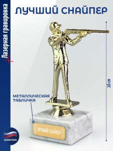 Наградная статуэтка «Стрелок с ружьем» - используется для вручения участникам соревнований, признавая достижения как новичков, так и опытных тренеров и ветеранов.