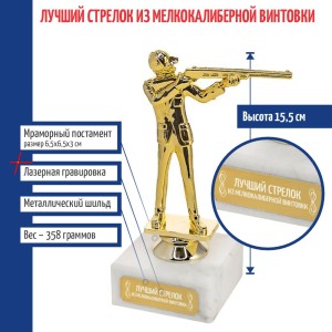 Статуэтка Стрелок "Лучший стрелок из мелкокалиберной винтовки" на мраморном постаменте (15,5 см) - описание товара