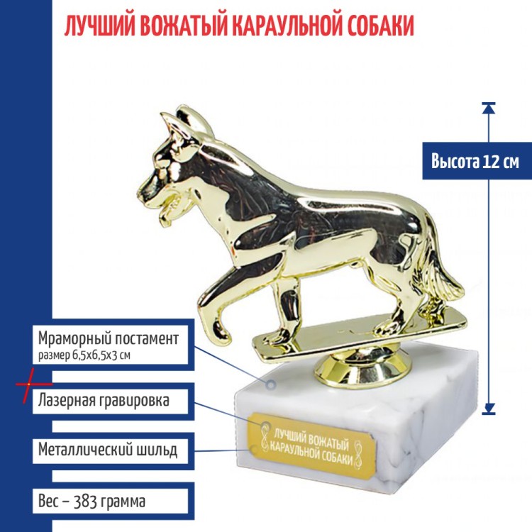Статуэтка Собака "Лучший вожатый караульной собаки" на мраморном постаменте (12 см)
