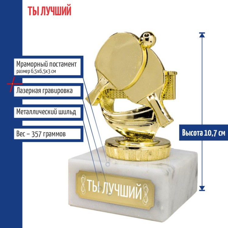 Статуэтка Пинг-понг "Ты лучший" на мраморном постаменте (10,7 см) - описание товара