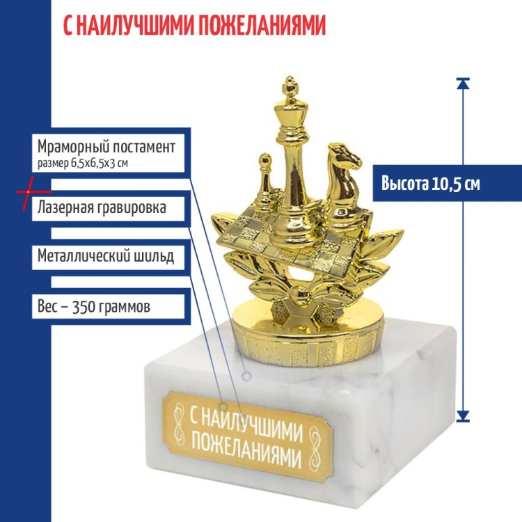 Статуэтка Шахматы "С наилучшими пожеланиями" на мраморном постаменте (10,5 см) - описание товара