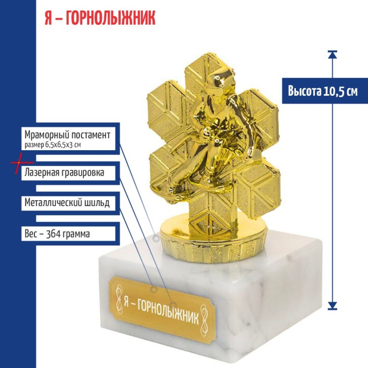 Статуэтка Лыжный спуск "Я - горнолыжник" на мраморном постаменте (10,5 см) - описание товара
