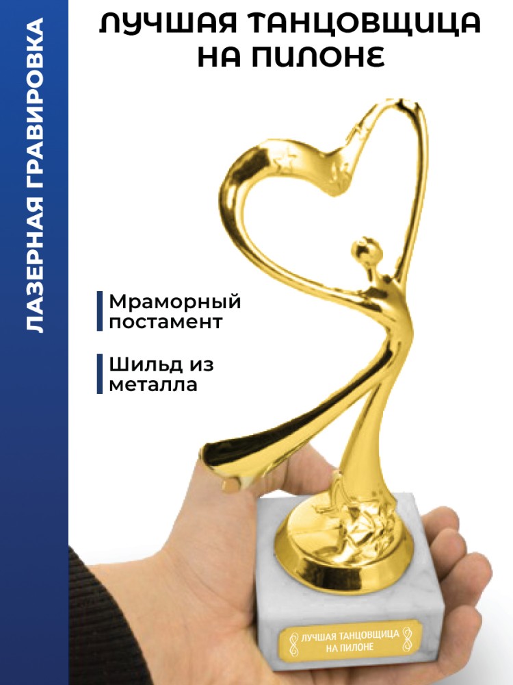 Призовая танцевальная статуэтка с сердцем подчеркнёт значимость успехов и станет достойным украшением дома или зала.